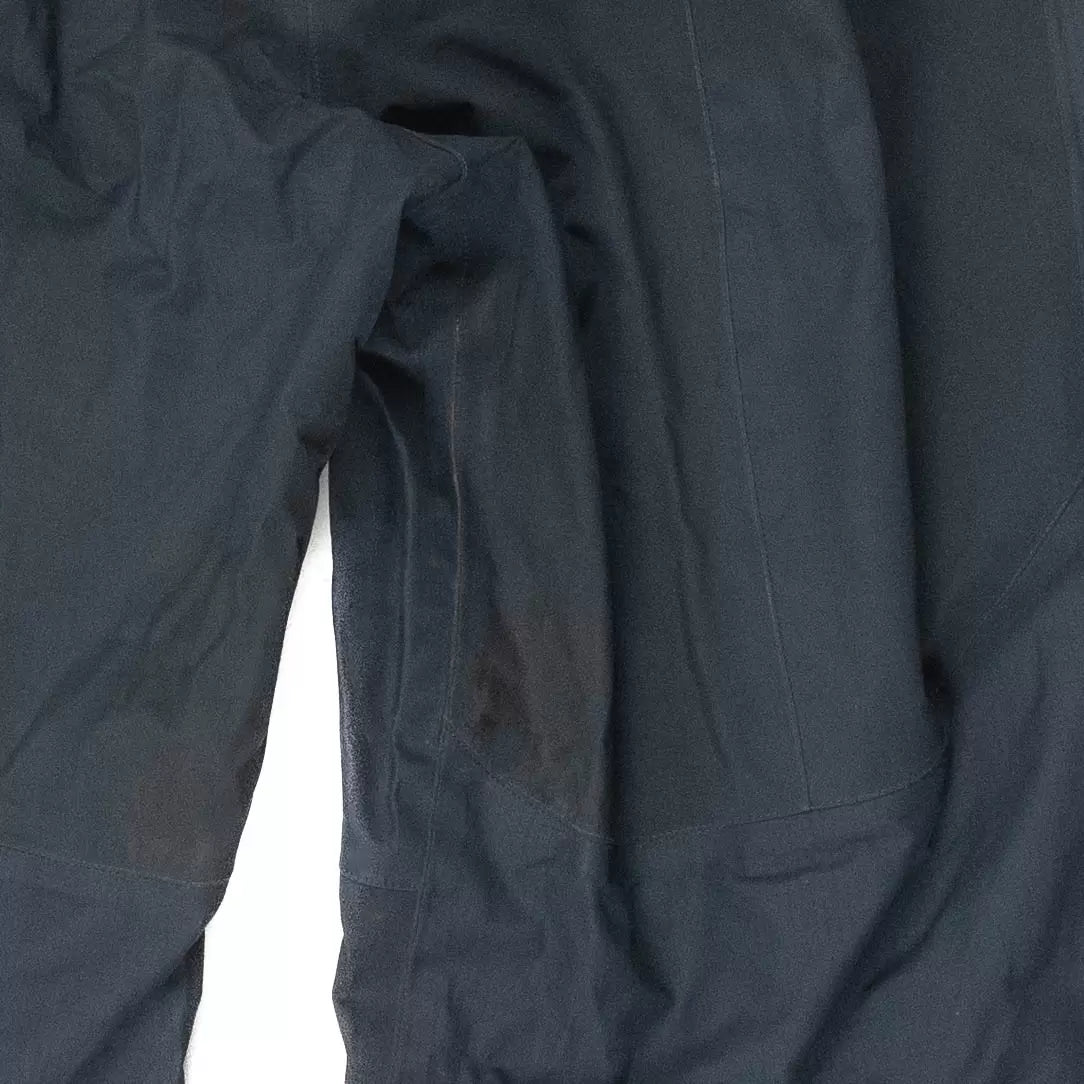 With this item, the following damages were observed: -Age, this item is an older Arc'teryx item -Seam tape looks to be in okay shape but could be replaced soon -Light scuffing on gaiters and legs -Lightly dirty